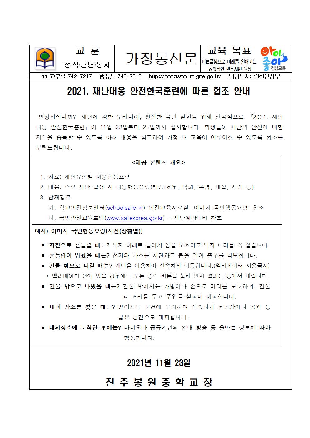 2021. 재난대응 안전한국훈련에 따른 협조 안내(가정통신문).jpg