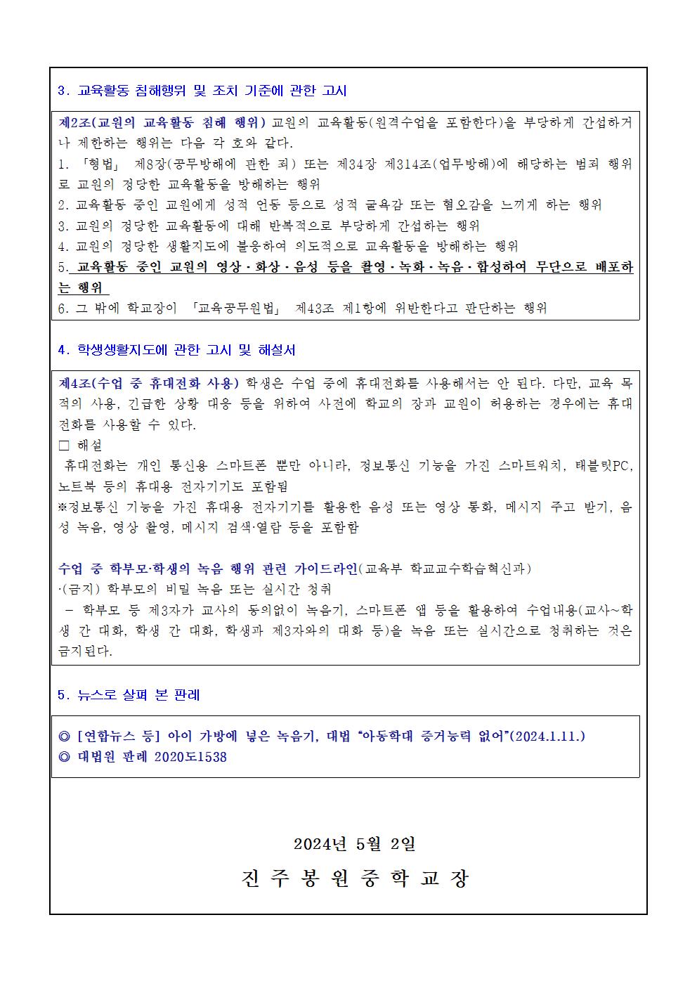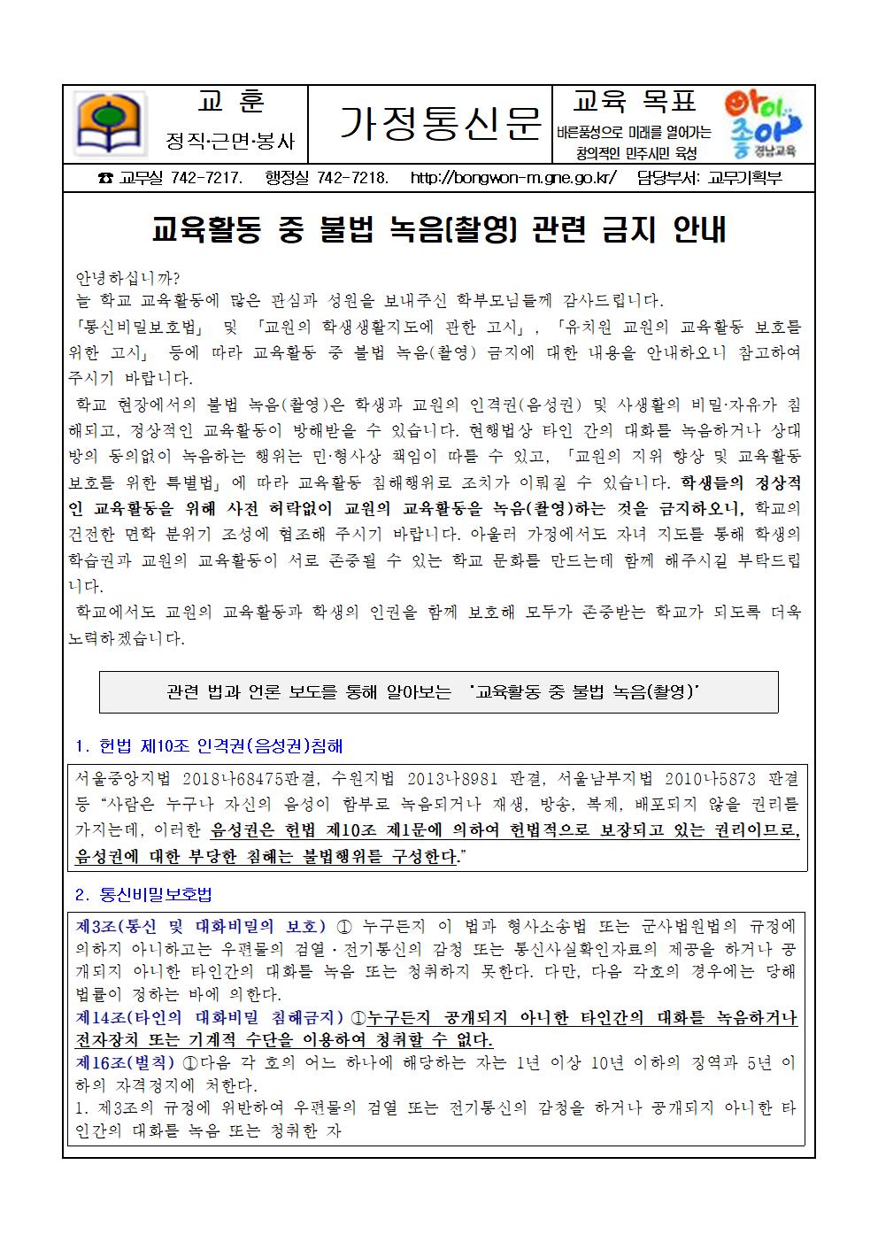 교육활동 중 불법 녹음(촬영) 관련 금지 안내