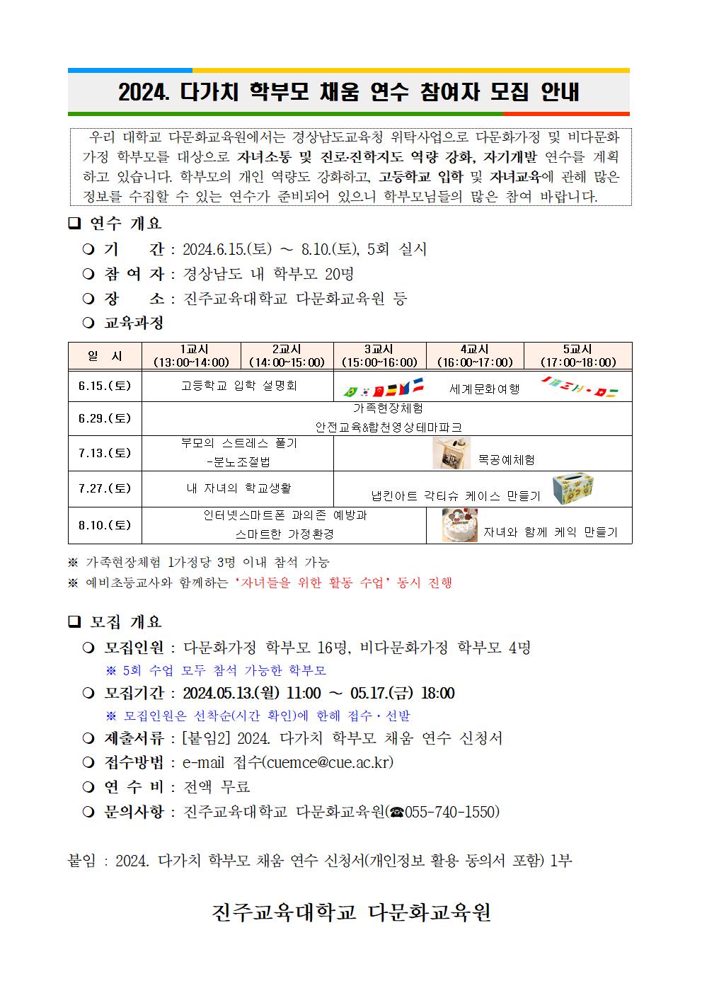 2024. 다가치 학부모 채움 연수 홍보 협조 및 참여 요청