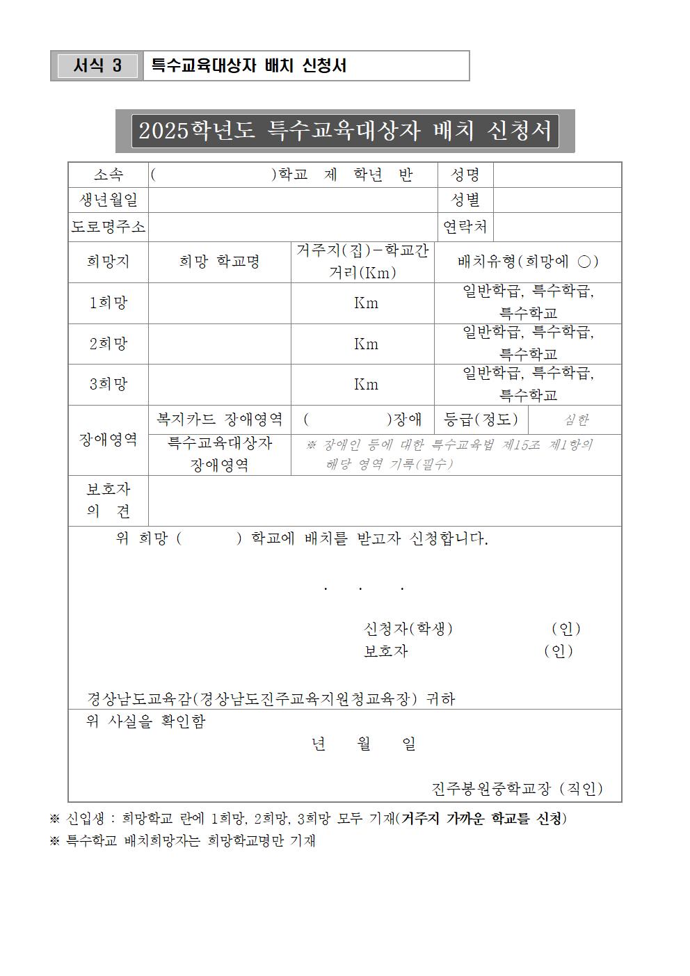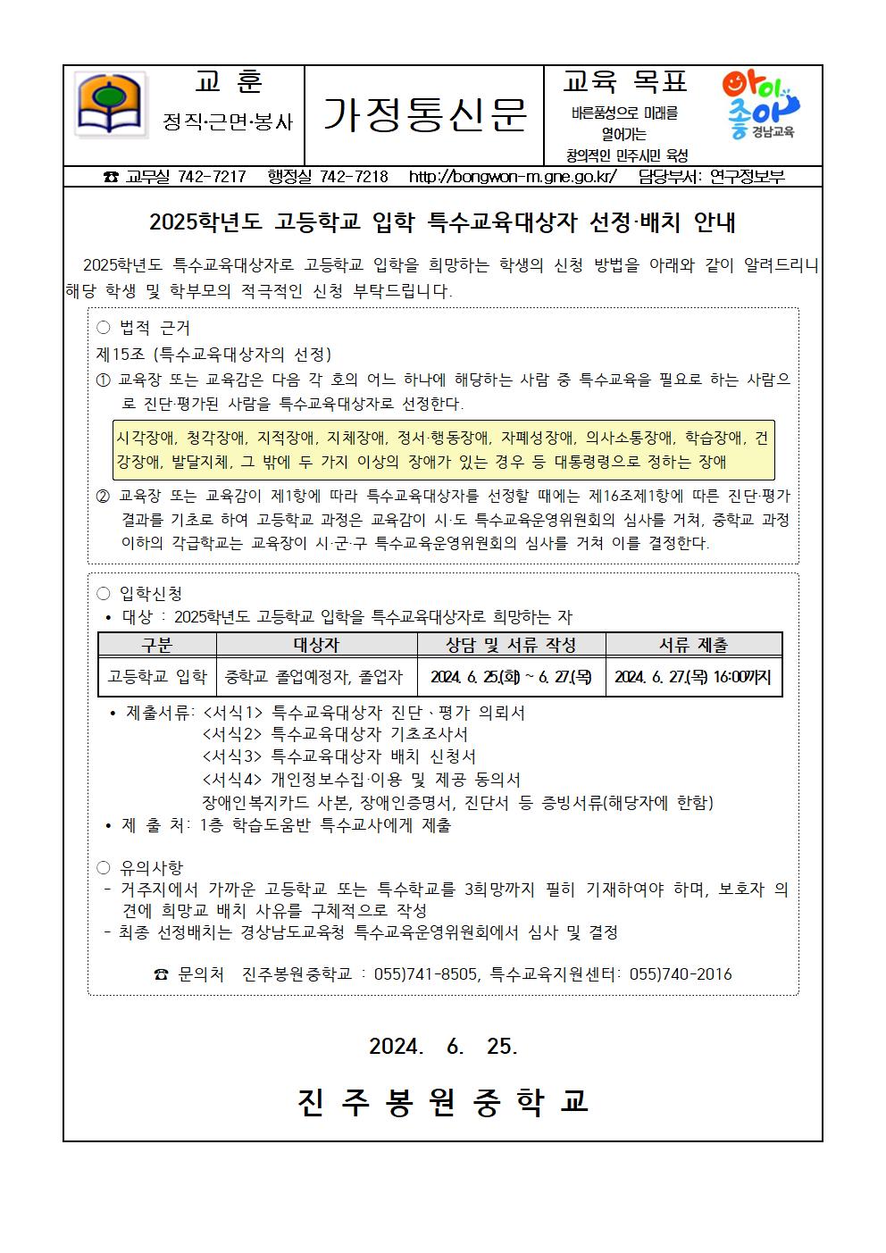 2025학년도 특수교육대상자로 고등학교 입학을 희망하는 학생의 신청 방법을 안내드립니다.