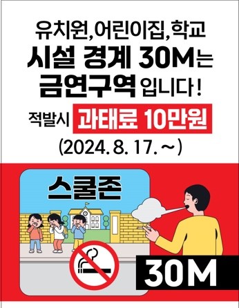 「국민건강증진법」개정(공포 '23.8.16.)으로 아래와 같이 금연구역이 확대 및 신규 지정됨을 알려드립니다. 자신과 내 가족, 우리 이웃의 건강을 위하여 금연에 적극 협조 바랍니다.