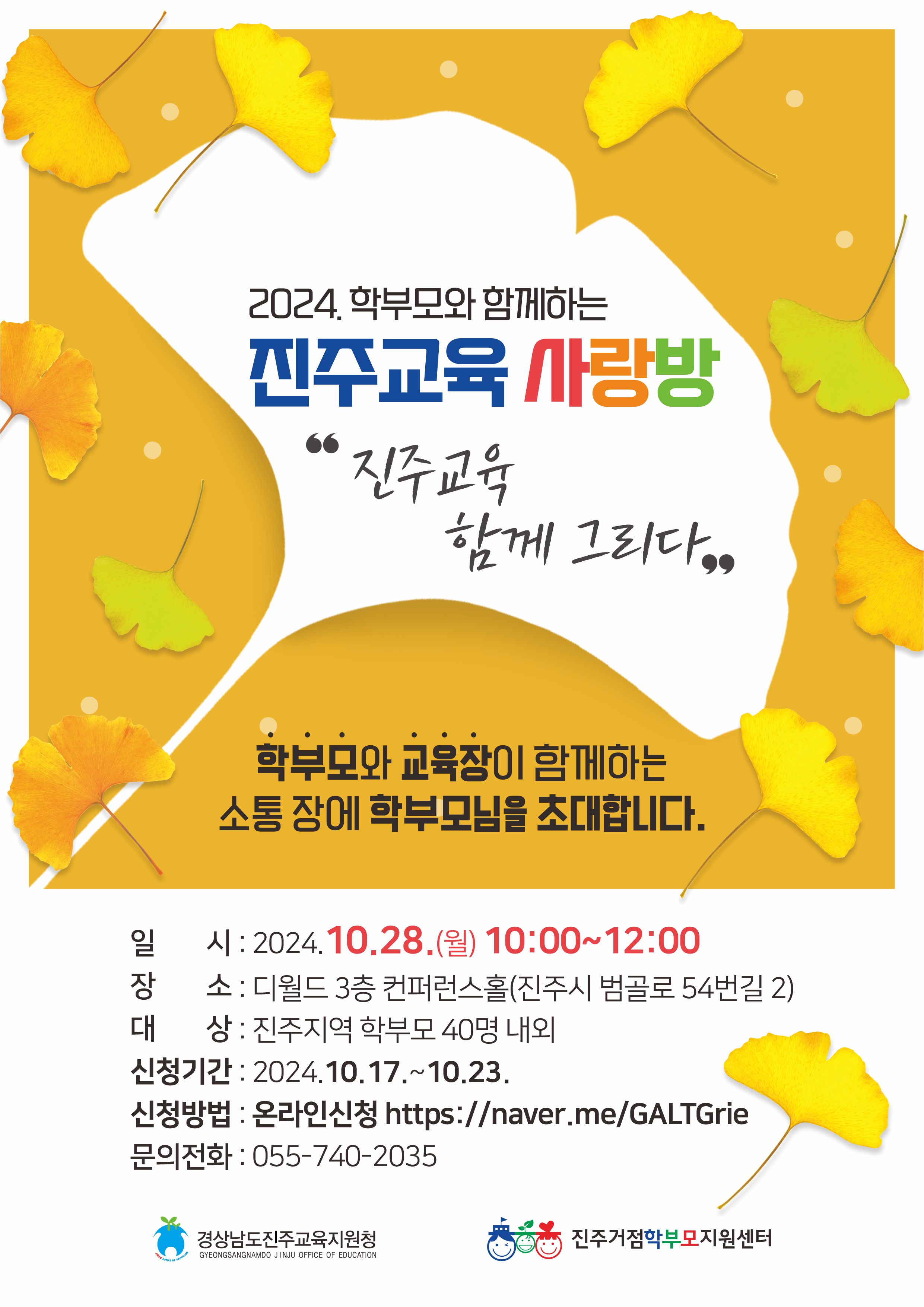 학부모와 교육장이 함께하는 소통 장에 학부모님을 초대합니다.