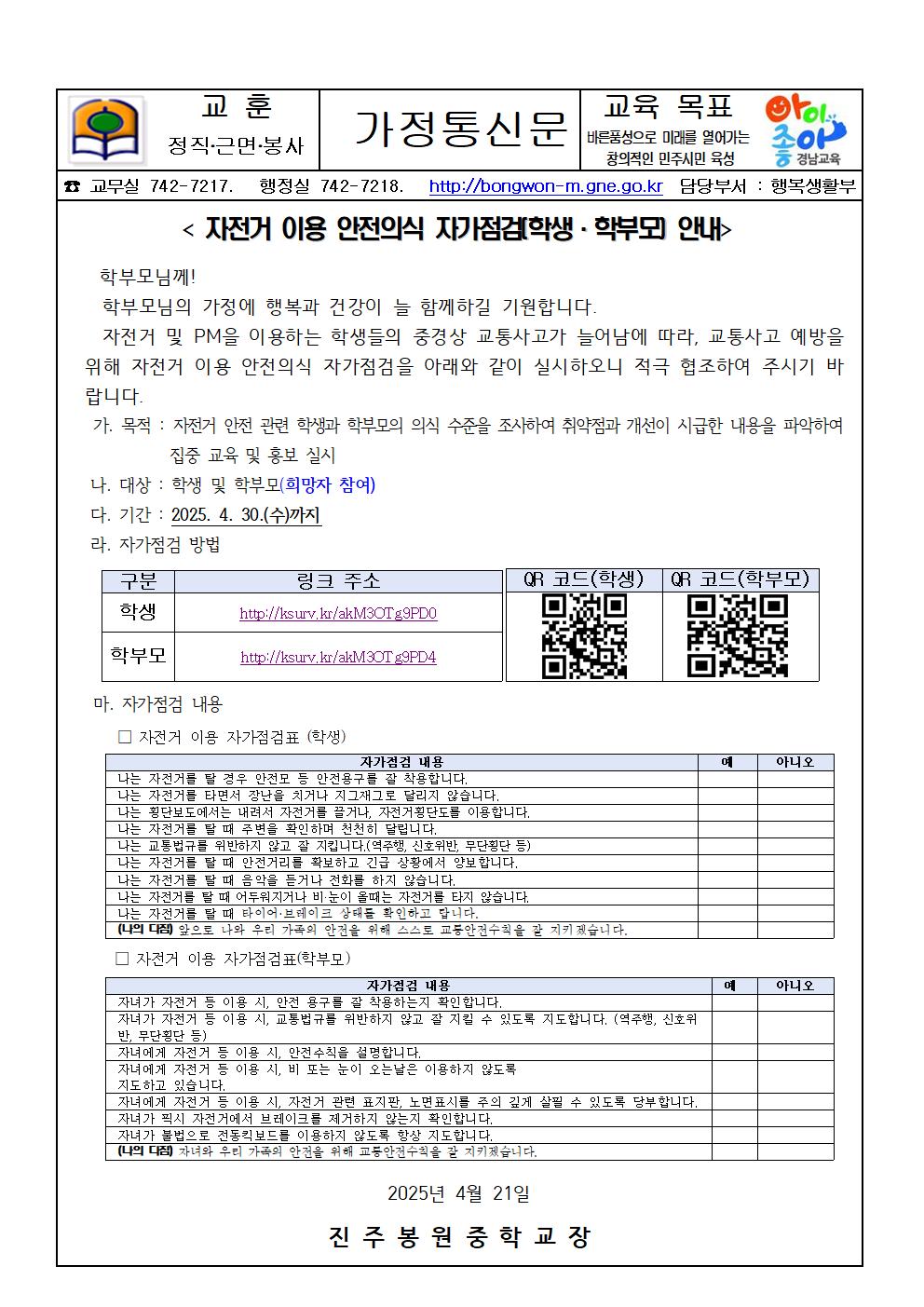 2025. 자전거 이용 안전의식 자가점검 안내 가정통신문.hwp