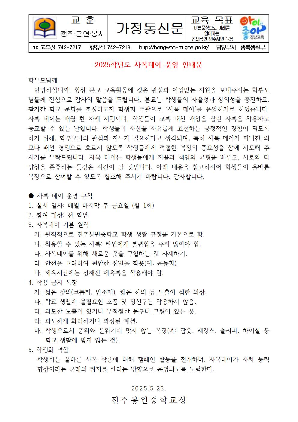 진주시 중학교 학교군 및 중학구 고시 개정 행정예고