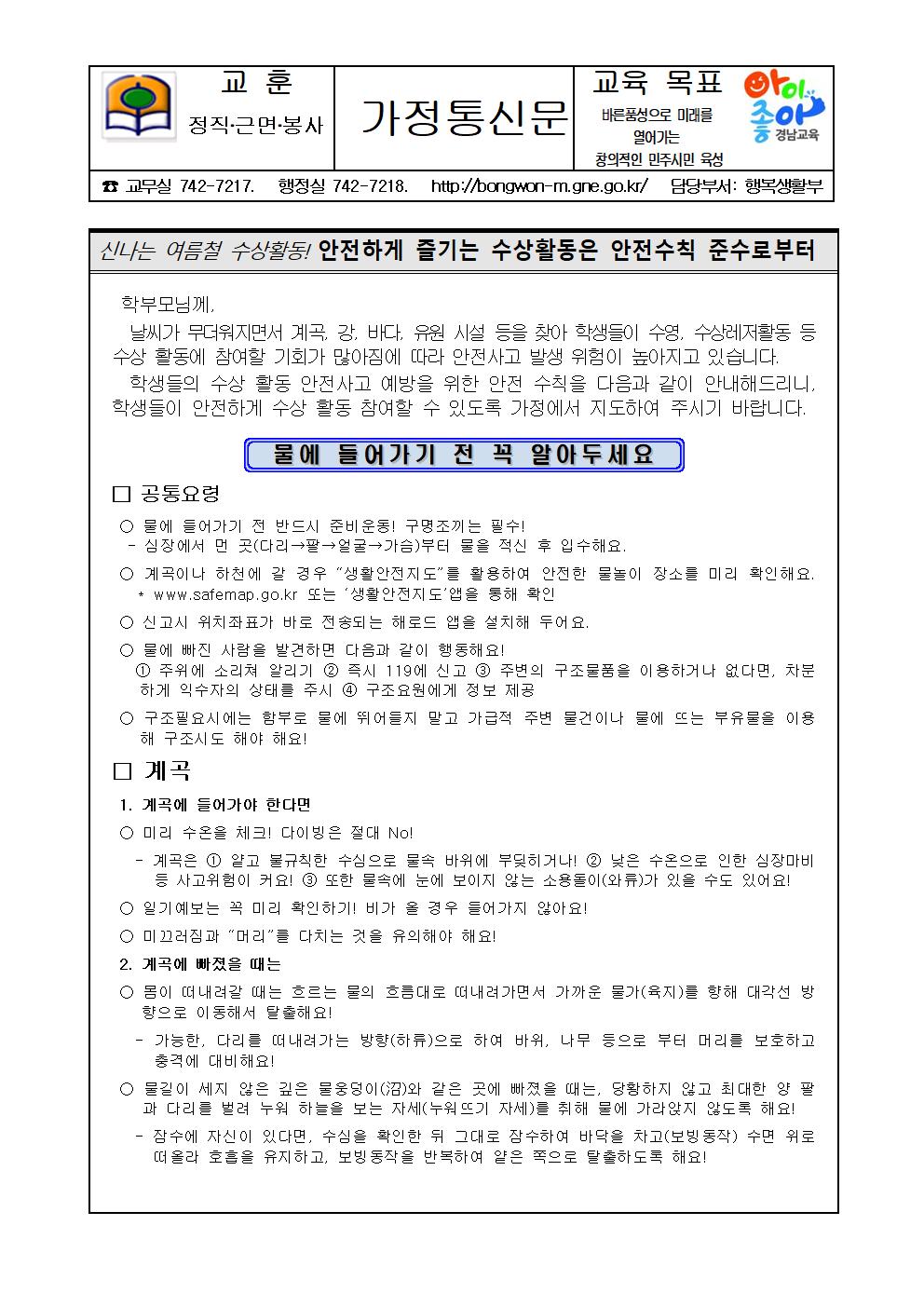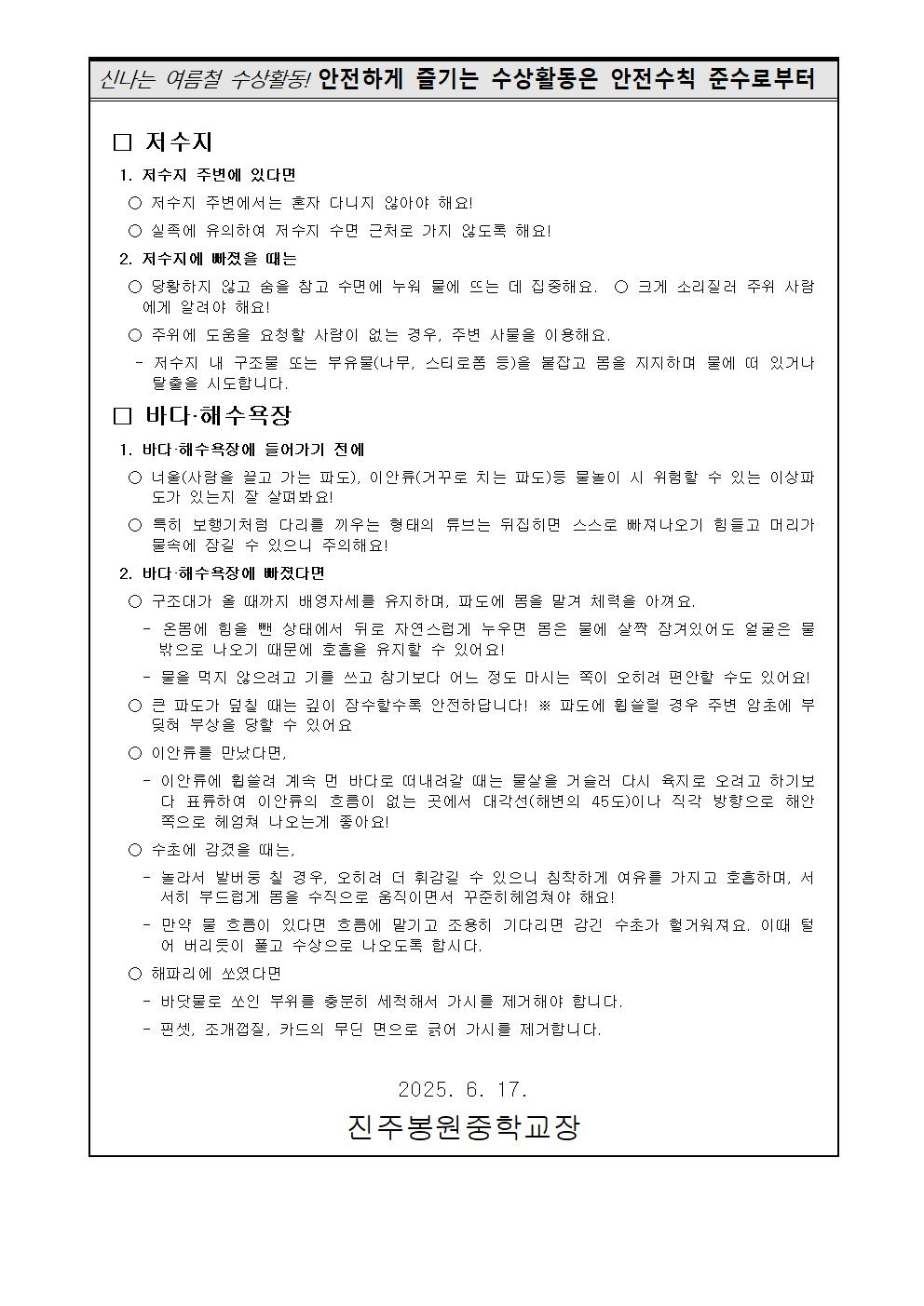 수상안전사고 예방을 위한 안전수칙 안내