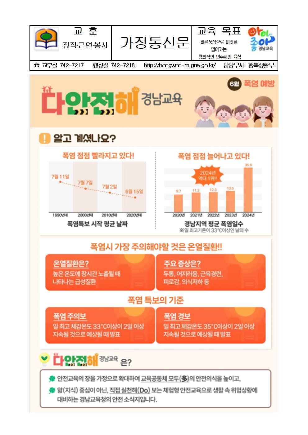 안전교육 홍보 소식지 '다안전해 경남교육' 6월호 안내