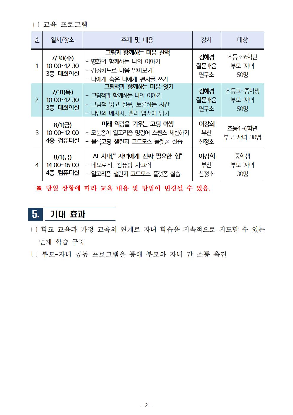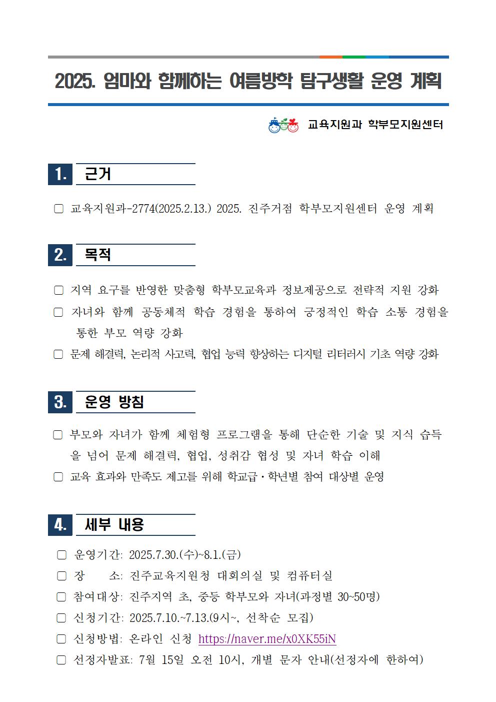 2025. 엄마와 함께하는 여름방학 탐구생활 운영 계획