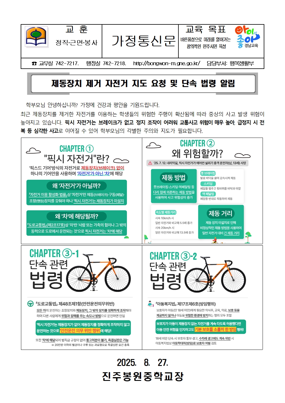 제동장치 제거 자전거 지도 요청 및 단속 법령 알림