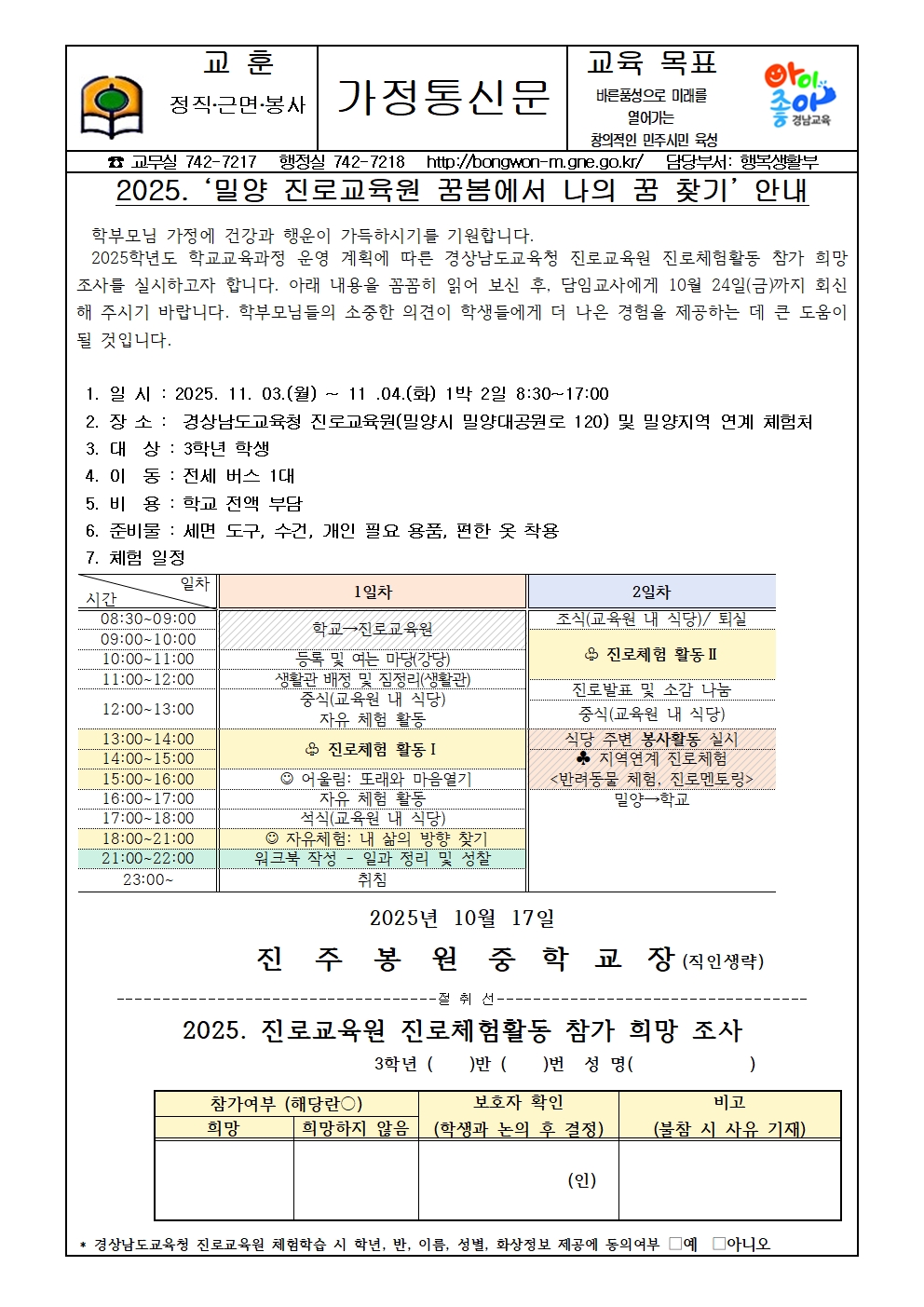 2025. '밀양 진로교육원 꿈봄으로 나의 꿈 찾기' 안내