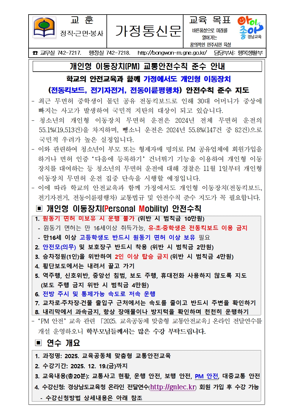 개인형 이동장치(PM) 교통안전수칙 준수 안내